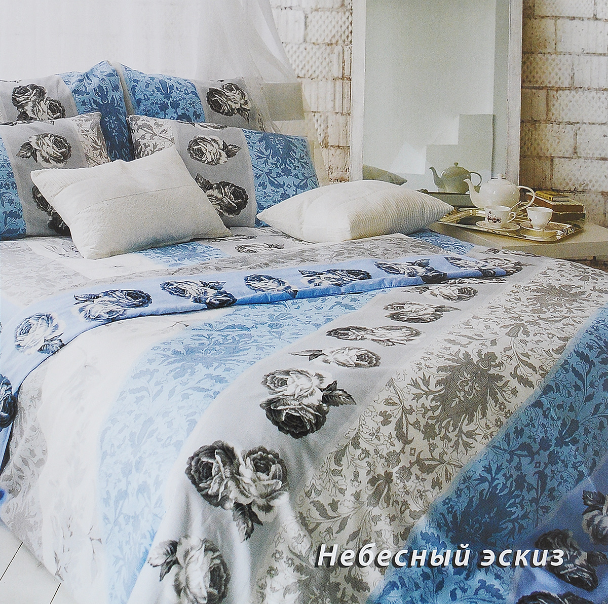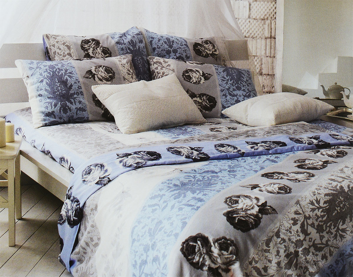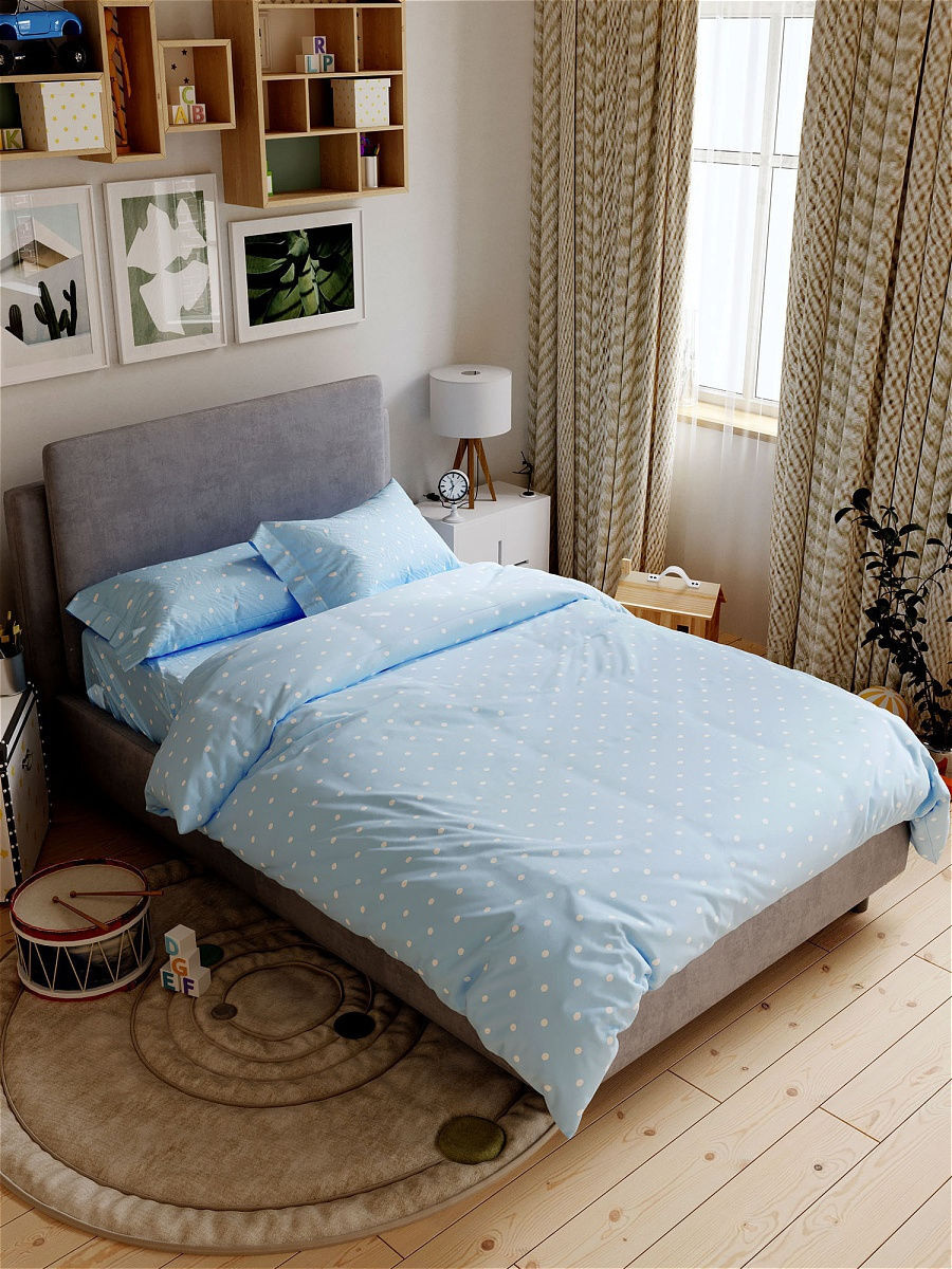 Фото нежной девушки на голубом постельном