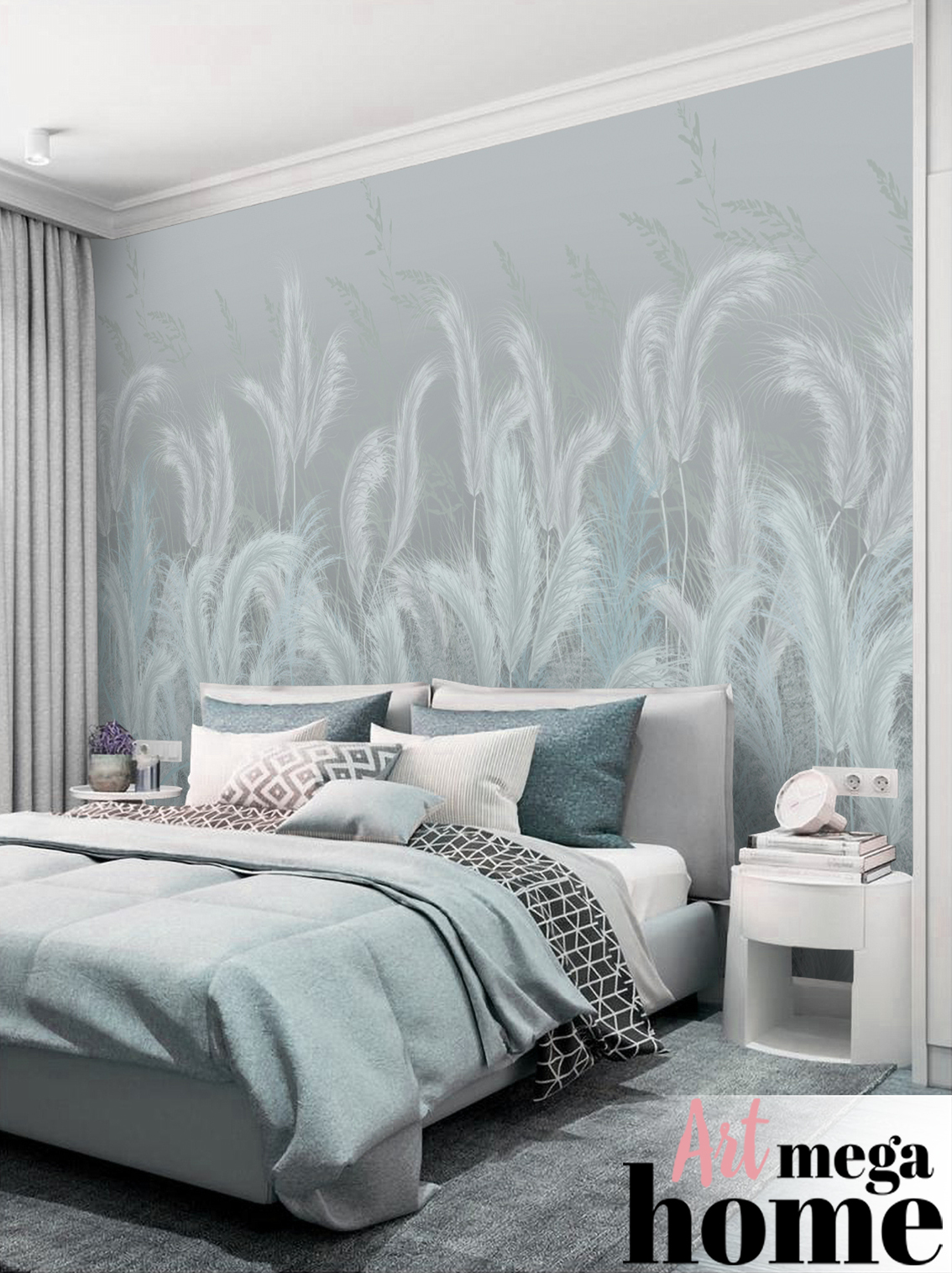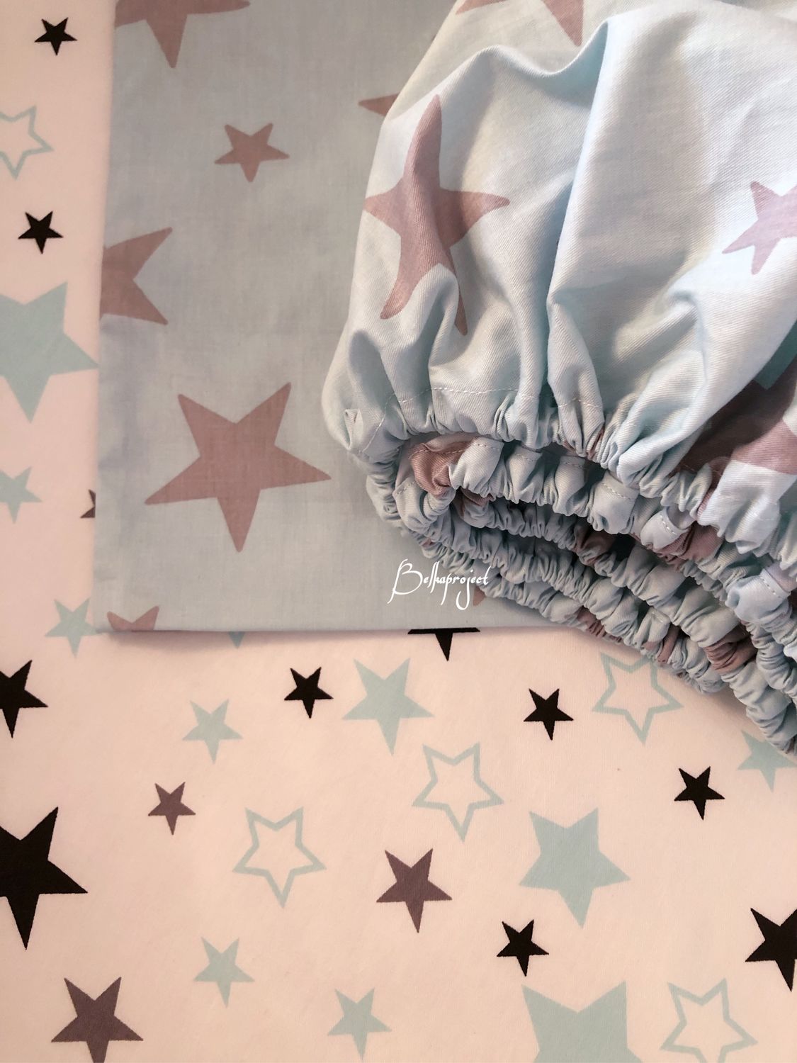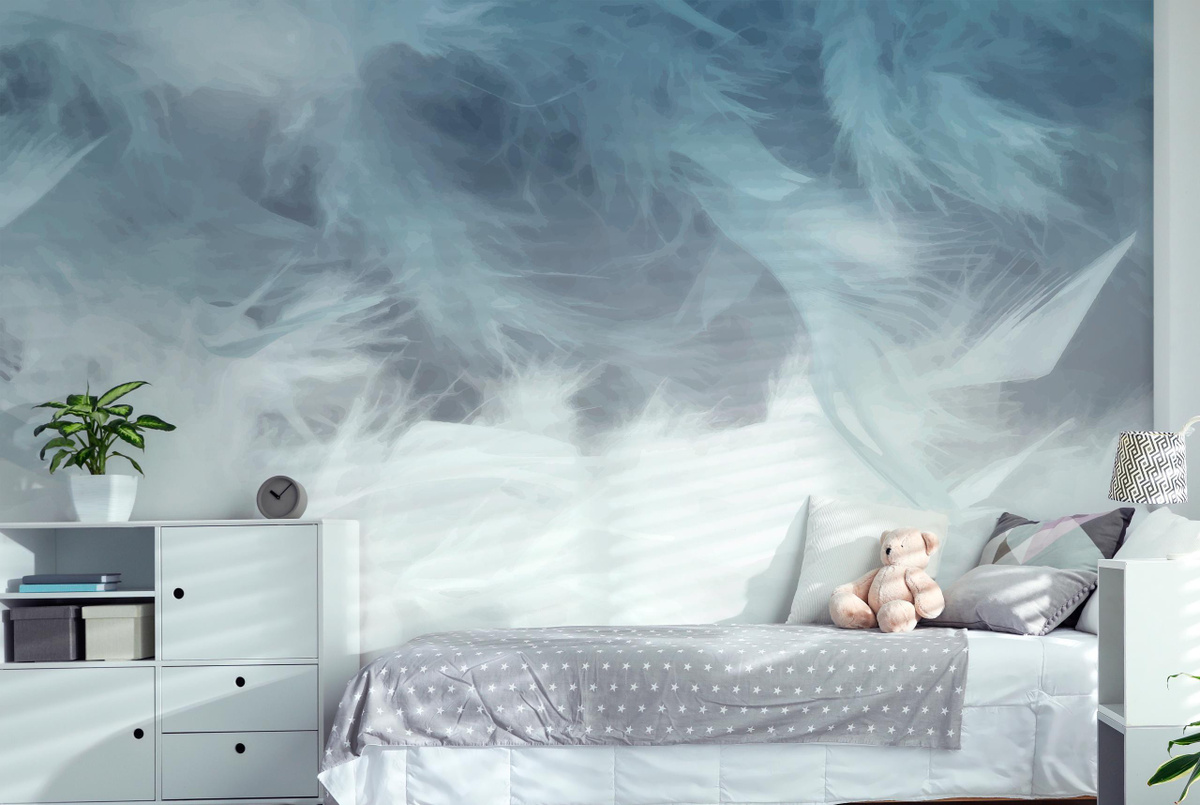 Фото нежной девушки на голубом постельном