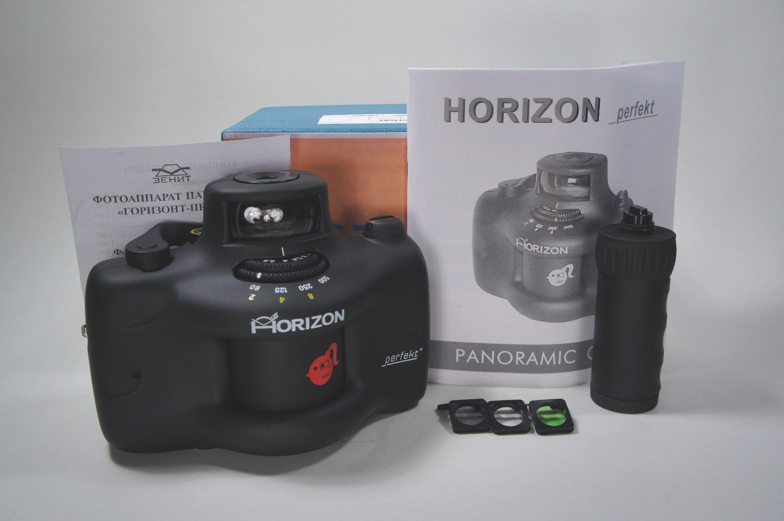 Панорамный плёночный фотоаппарат 'Горизонт' ('Horizon Perfekt') производился на Красногорском заводе им . Зверева . Текущая партия, часть которой сейчас представлена в нашем магазине