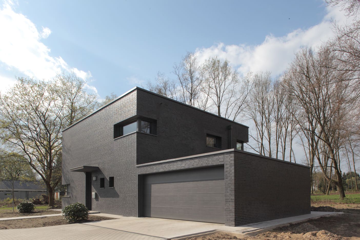 Черные дома . Частный дом в черном цвете . Фальцевая кровля на скандинавских домах . Барнхаус фахверк . Серый дом с темной крышей . Черно-белая фотография коттеджа .