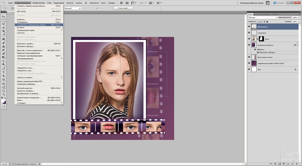 Коллаж с имитацией фотоплёнки в Photoshop'e
