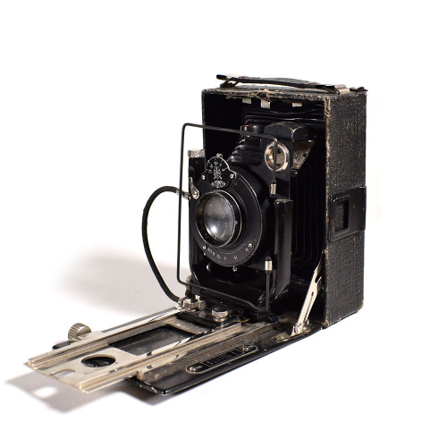 Фотоаппарат «Фотокор № 1 » представляет собой пластиночную складную универсальную камеру формата 9×12 с двойным растяжением меха (движением металлических салазок объективной стойки по корпусу фотоаппарата и движением самой объективной стойки по салазкам) .