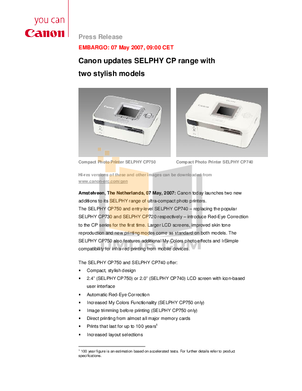 Фотопринтер Canon Selphy Cp750