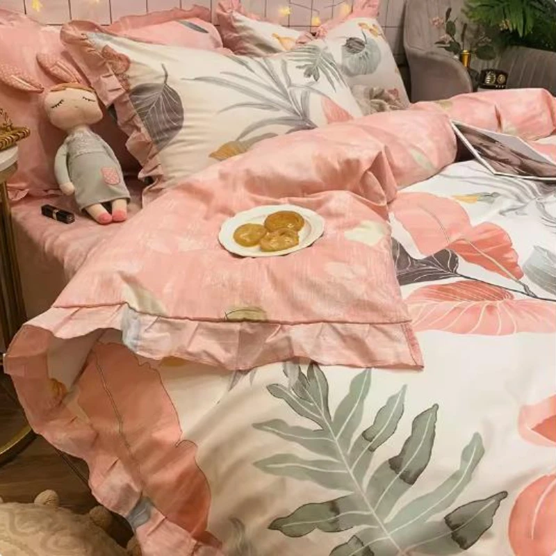 Four-Piece Set Household Pure Cotton Ruffled Flower Embroidery Color Printing Dyeing Bed Sheet Three-Piece Set 1.8M Fitted Sheet - Купить с бесплатной доставкой