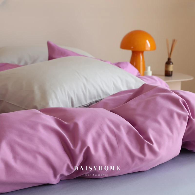 Four-Piece Washed Cotton Double-Sided Stitching Contrast Color Skin-Friendly Soft Bedding Personalized Quilt Cover Modern Simple - Купить с бесплатной доставкой
