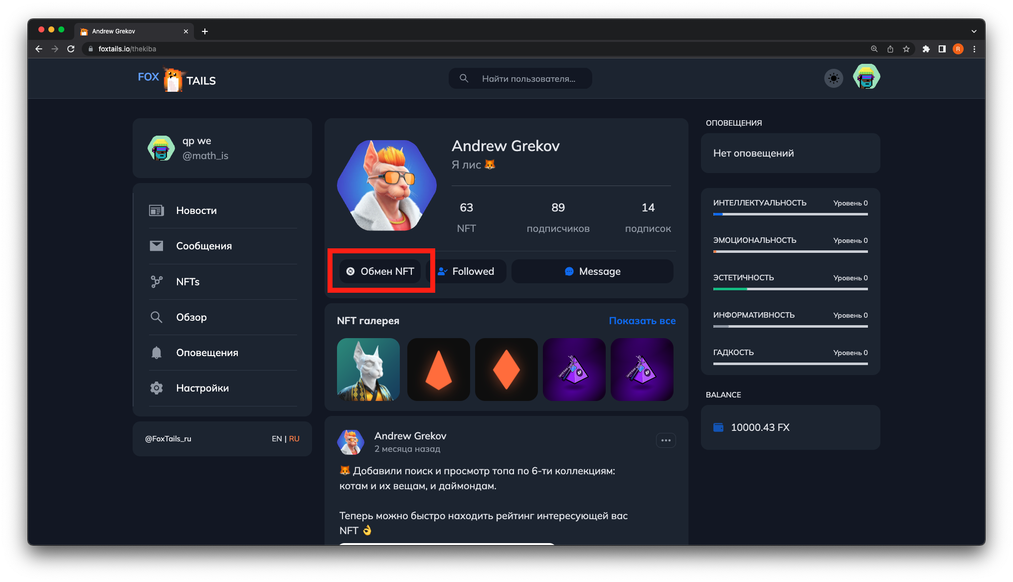 2. ΠΠ΅ΡΠ΅ΠΉΠ΄ΠΈΡΠ΅ Π² ΠΏΡΠΎΡΠΈΠ»Ρ ΠΊ ΠΏΠΎΠ»ΡΠ·ΠΎΠ²Π°ΡΠ΅Π»Ρ, Ρ ΠΊΠΎΡΠΎΡΡΠΌ Π²Ρ Ρ ΠΎΡΠΈΡΠ΅ ΠΏΡΠΎΠ²Π΅ΡΡΠΈ ΠΎΠ±ΠΌΠ΅Π½ ΠΈ Π½Π°ΠΆΠΌΠΈΡΠ΅ ΠΠ±ΠΌΠ΅Π½ NFT / Swap NFT.