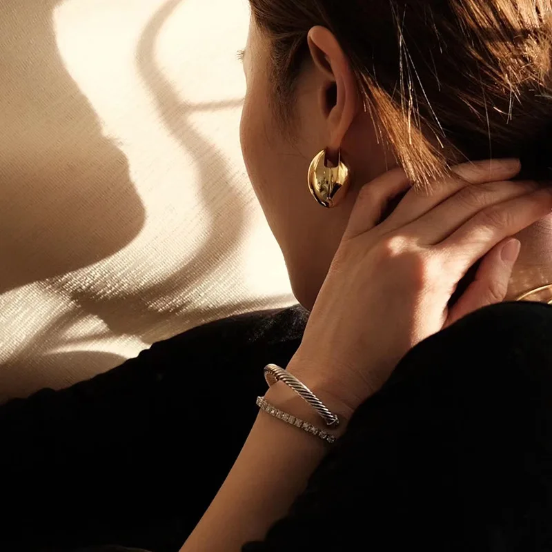 «Foydjew French Style Retro Metal Gold Color Earrings For Women Fashion Simple Circle Ear Buckle Hoop Earring Daily Accessories» по лучшей цене на рынке! Всего за 2$ (190рублей)