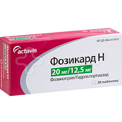 Фозикард - это ингибитор АПФ, МНН - Фозиноприл . Фозикард Н является комбинированным препаратом, ингибитором АПФ с мочегонным действием . МНН: Фозиноприл + Гидрохлоротиазид . Выпускается в виде таблеток, которые содержит 5, 10 или 20 мг активного компонента . Они имеют белый . . .