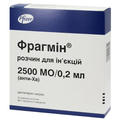 Описание Фрагмин 2500МЕ 0 .2 мл №10 раствор для инъекций . Для предотвращения возникновения тромбозов используется Фрагмин 2500МЕ 0 .2 мл №10 раствор для инъекций . Инструкция указывает, что вещество относится к антитромботическим средствам фармакологической группы . . .