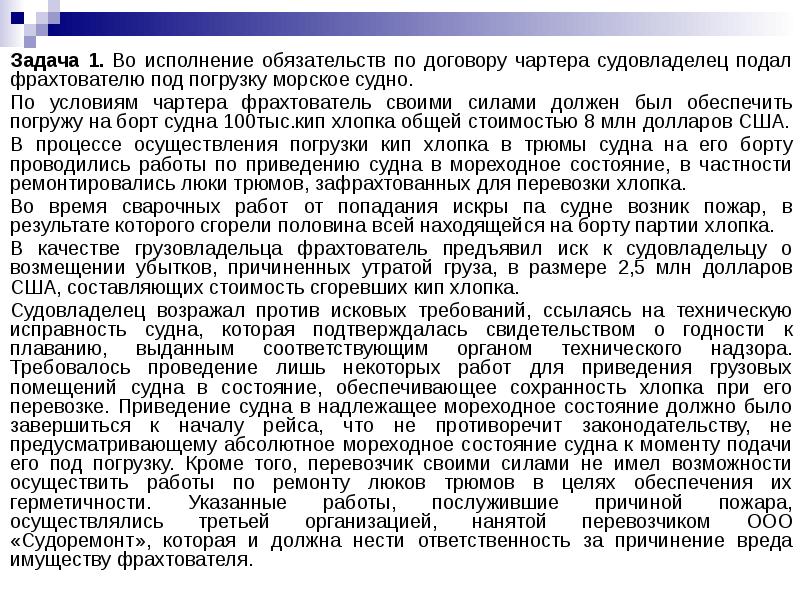 Фрахтования чартера