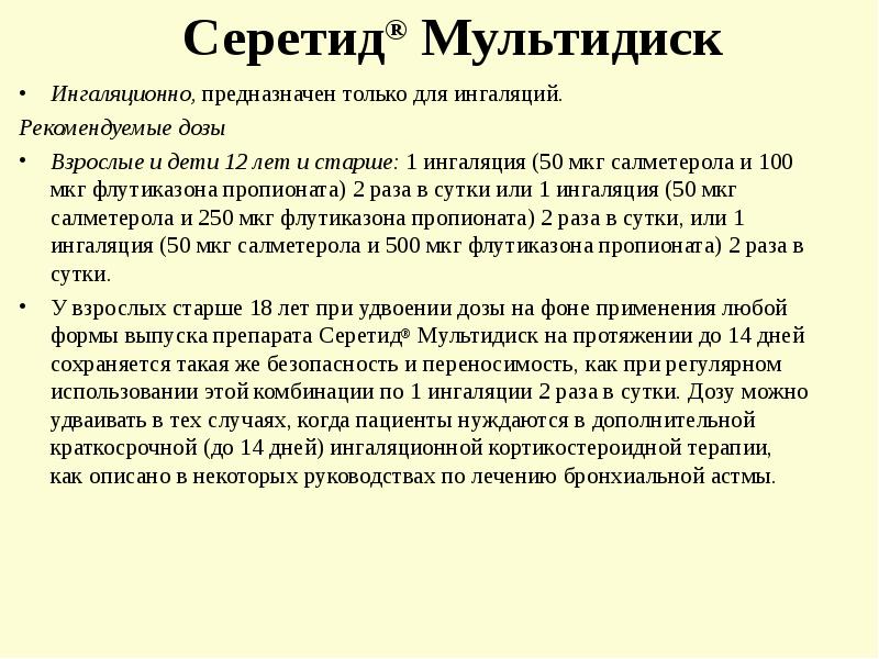 Серетид — инструкция по применению, аналоги, отзывы и формы выпуска (аэрозоль 25 + 50, 25 + 125, 25 + 250 или порошок 50 + 100, 50 + 250, 50 + 500 Мультидиск для ингаляций) препарата для лечения бронхиальной астмы у взрослых, детей и при . . .