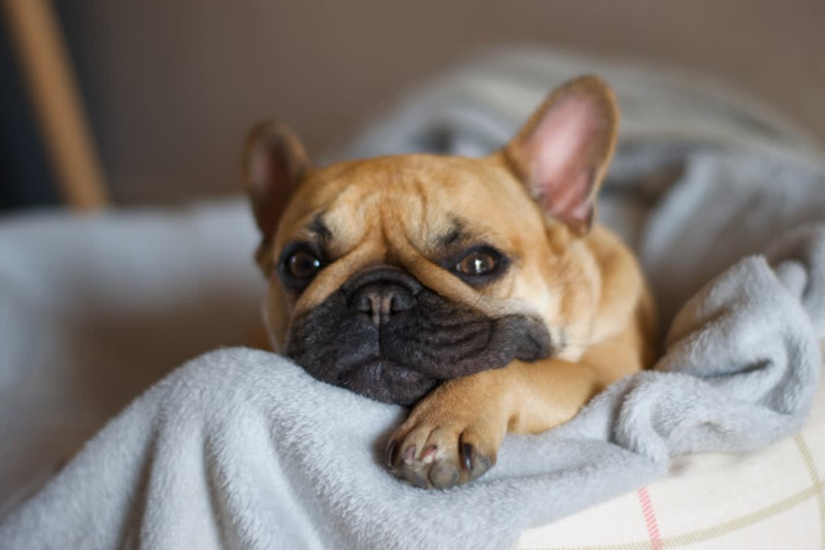 Французский бульдог лежит