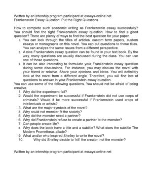 Great Frankenstein Essay Topics and Questions - Bestessay4u