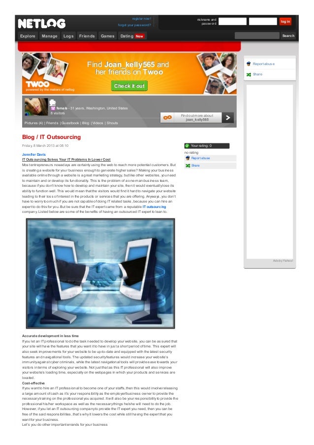More About Netlog .com . Trying to keep up with the current styles and trends, the accessibility of internet, Wi-Fi, mobile apps Dating Ireland has transferred to the twoo and you need to keep up! Our Free Online Dating service gives you a variety of members from different location across the breach so you can be sure that app will catch your eye .