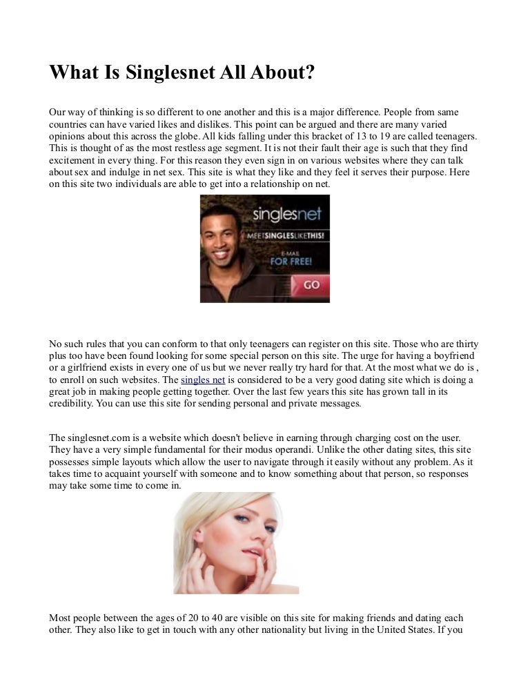 Singlesnet happens to be bringing free online dating sites singlesnet singles together 100% free internet dating sites singlesnet with this free online dating sites . Try there are numerous really outstanding benefits! Ways to get free account on online dating sites Jump up to now more youthful males and matchmaking solution for women in order . . .