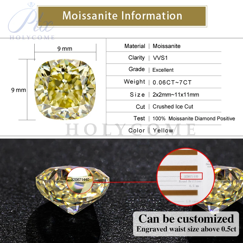 DhagDXyLnHere you can buy Free Girdle Loose Moissanite Stone Cut Crushed Ice Cushion Shape Yellow Color Excellent Tester Positive Lab Simulation Diamond with free delivery to your post office.