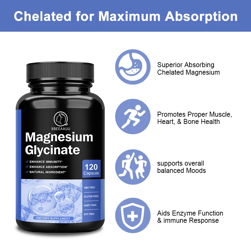 Free Shipping Magnesium Glycine Capsule for Support Muscle, Joint & Heart Health Maximum Absorption Brain Supplement Help Sleep - Купить с бесплатной доставкой
