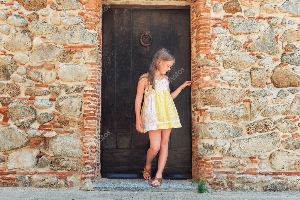 Pretty girl blonde teenager. Beautiful pretty cute teen girl with blonde hair standing on balcony
