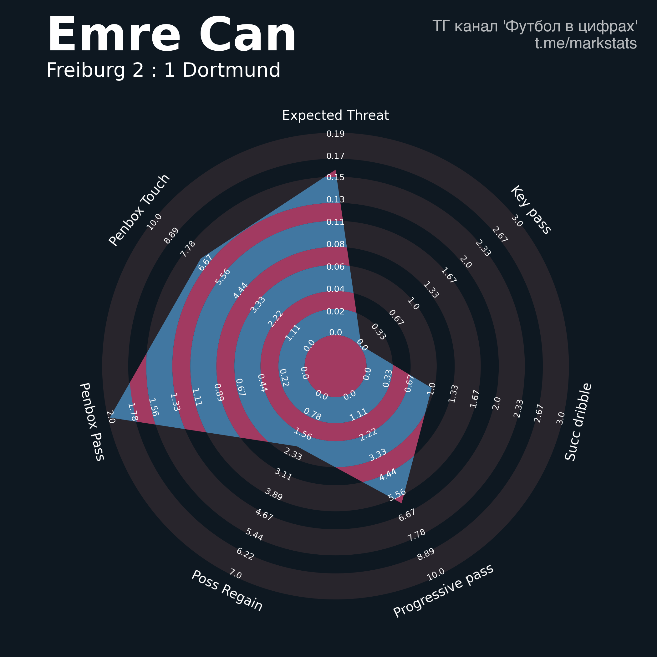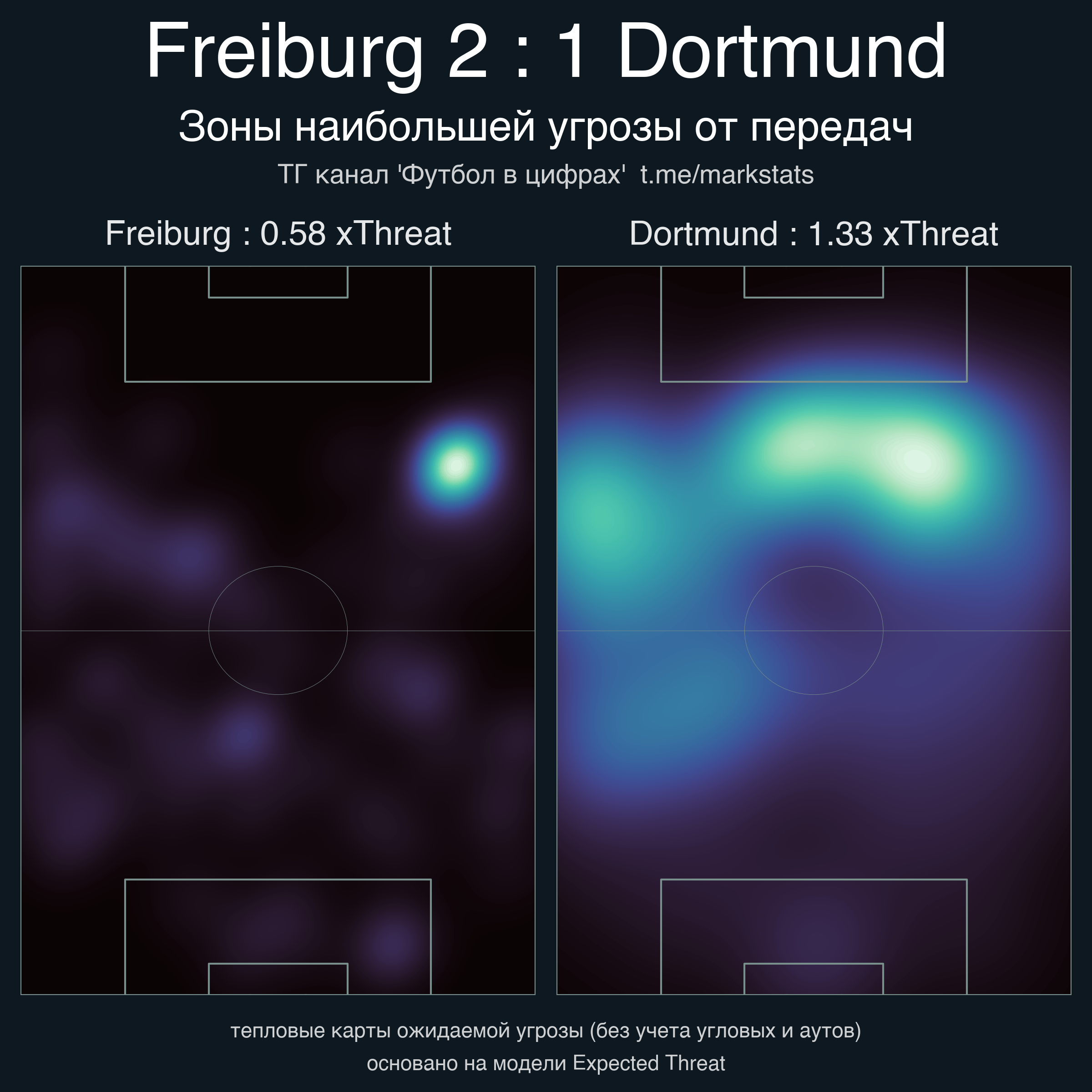 ▪ xThreat без учета угловых: 0.58 - 1.33