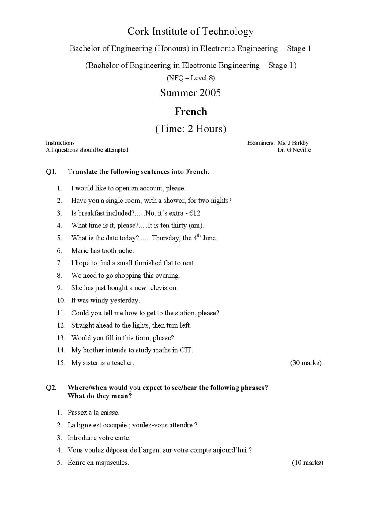 French Exam