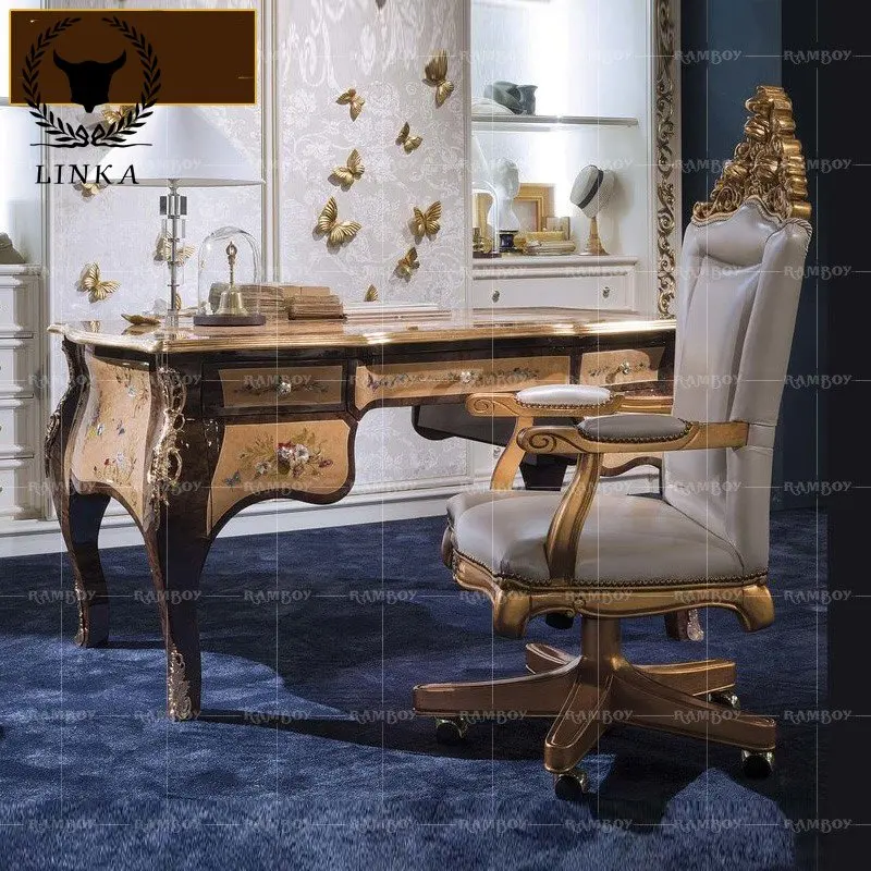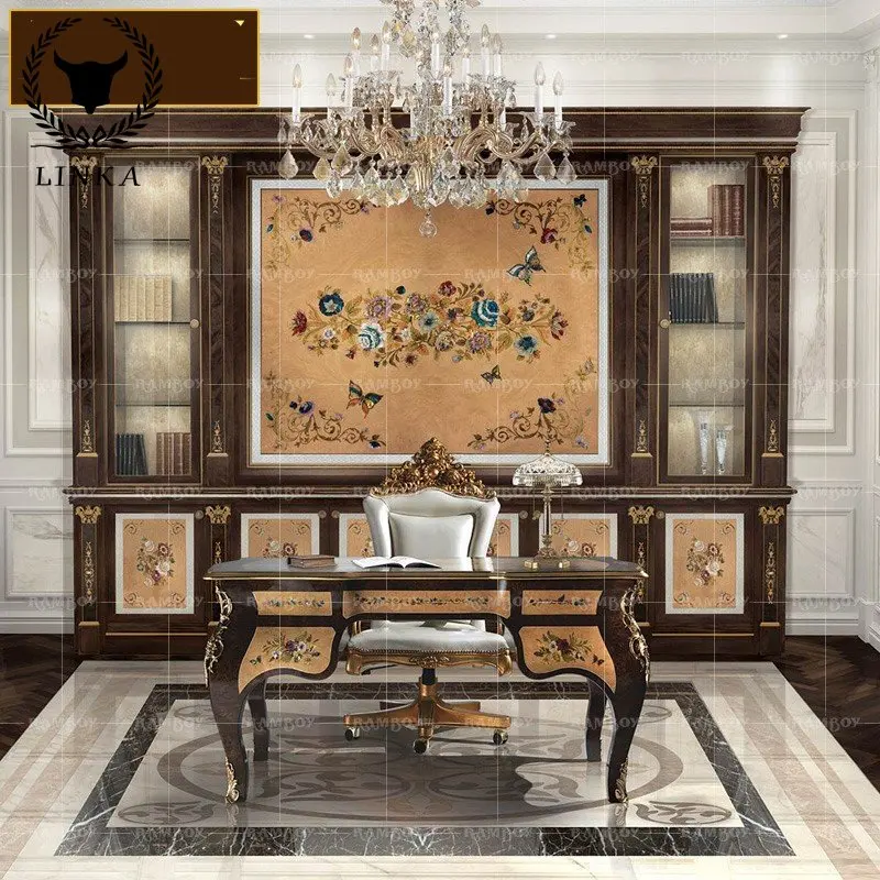 FAqYznypHere you can buy French Solid Wood Desk Writing Desk Computer Desk Butterfly Shell Inlaid Office Desk Bookcase European Furniture with free delivery to your post office.
