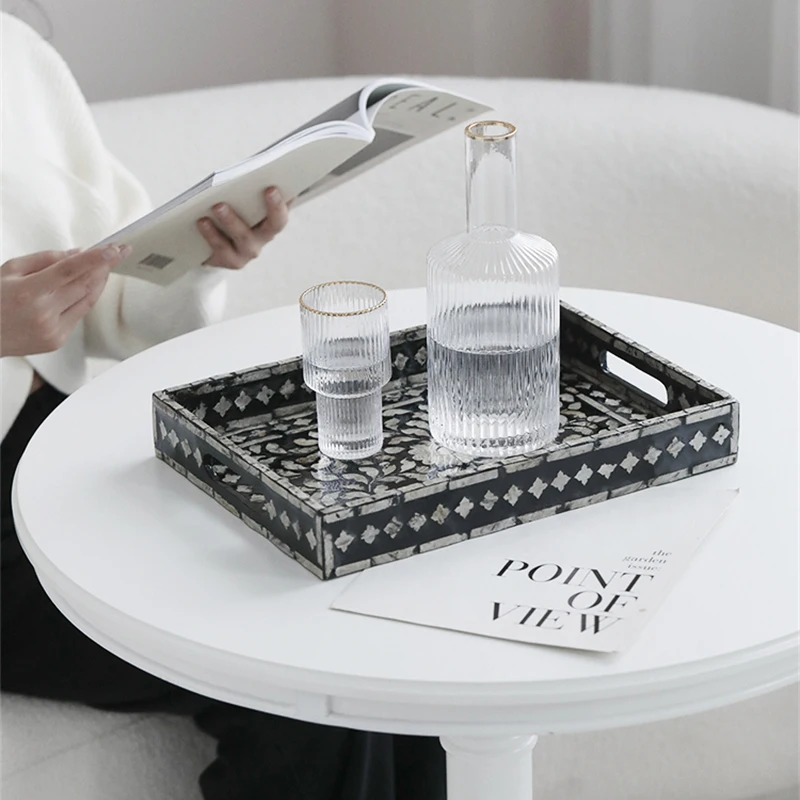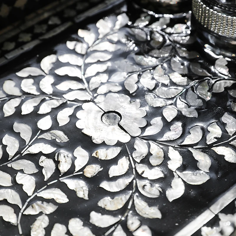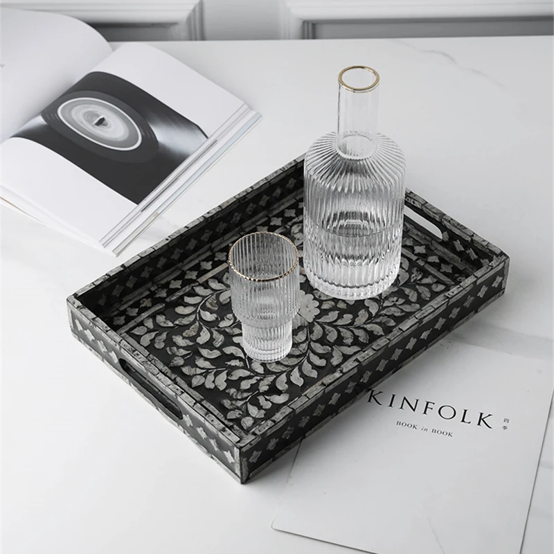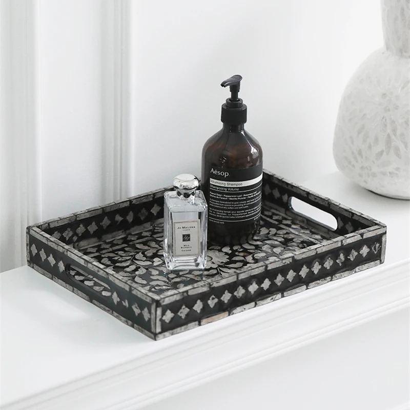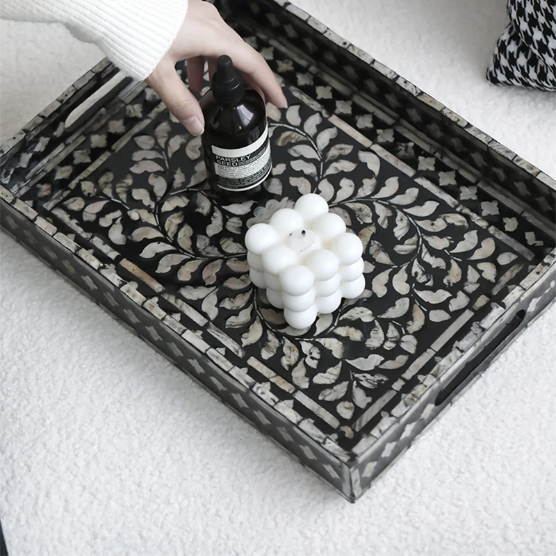 FnYFLEytHere you can buy French Storage Tray Retro Decorative Fruit Tray Natural Shell Rectangular Tea Tray Elegant Household Desktop Storage Tray with free delivery to your post office.