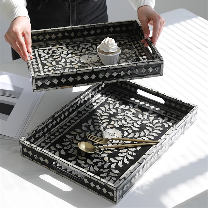 "French Storage Tray Retro Decorative Fruit Tray Natural Shell Rectangular Tea Tray Elegant Household Desktop Storage Tray" * Buy Now With Free Shipping Just For $46