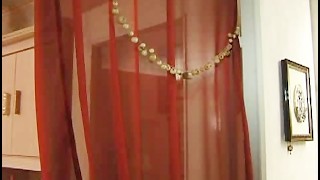Girl undressing in bedroom