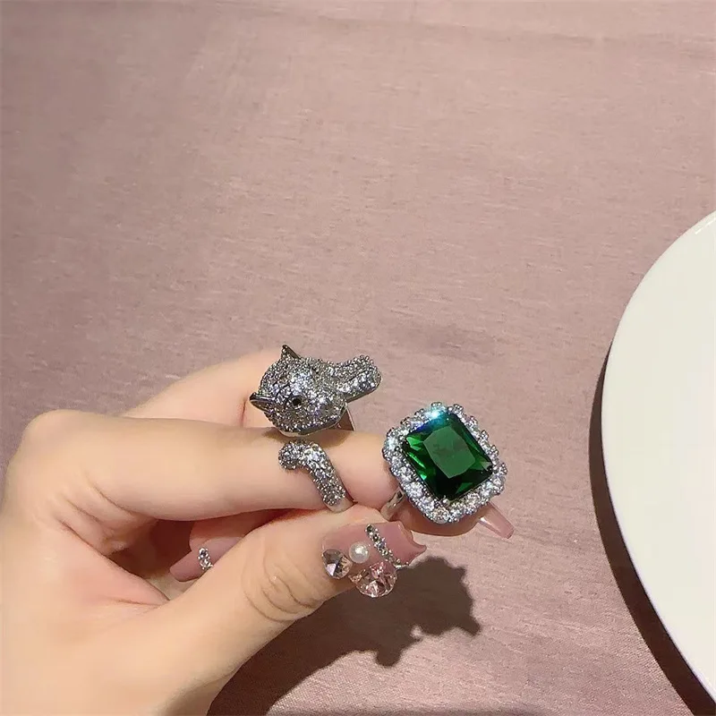 «French retro luxury temperament emerald ring female open mouth color treasure leopard ring adjustable index finger ring set» по лучшей цене на рынке! Всего за 25$ (2375рублей)