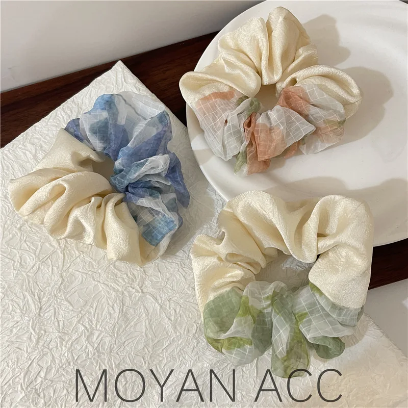 "Fresh Color Matching Mesh Bun Large Intestine Hair Ring Temperament Outdoor All-Matching Temperament Ponytail Rubber Band Headba" * Buy Now With Free Shipping Just For $4