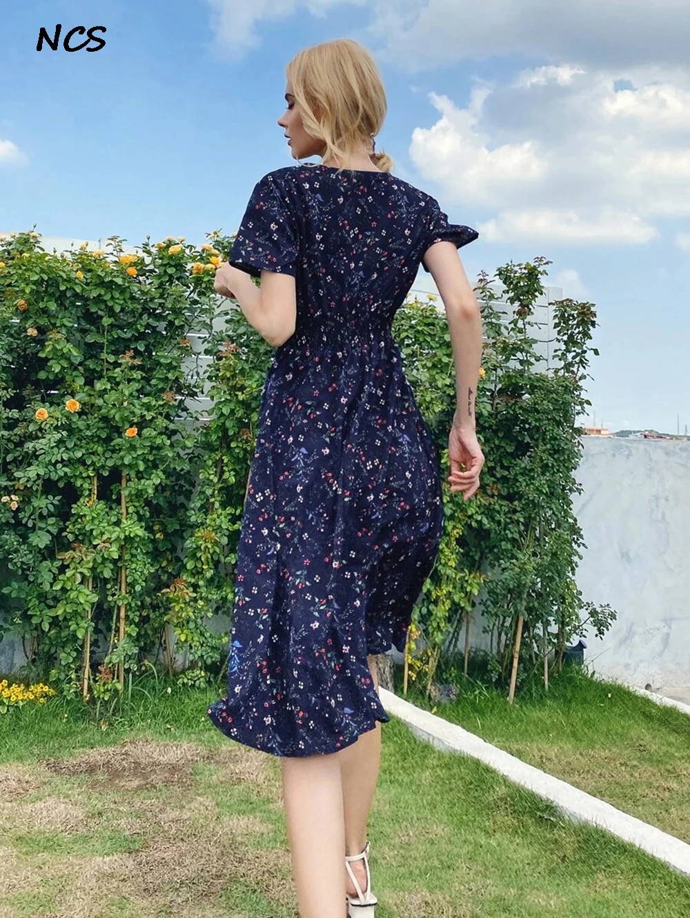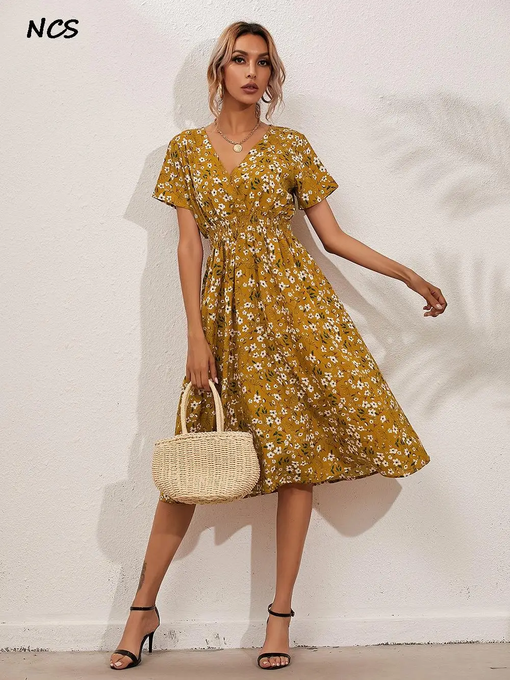 «Fresh Print Floral Ladies Summer Dress Fashion Fit And Flare V-neck short-sleeved A-line Chiffon Casual Girl Midi Dress Vestidos» по лучшей цене на рынке! Всего за 18$ (1710рублей)