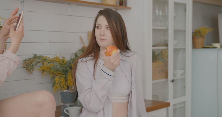 Fresh brunette babe taking two 118 photos