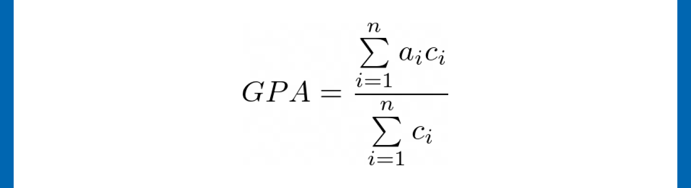 Average total grade you earn by the end of the semester is called GPA (grade point average). It is calculated by the following formula: