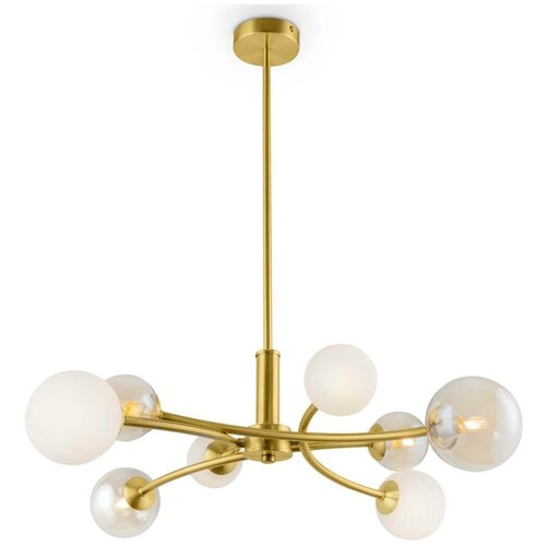 Freya'nın FR5116PL-08BS serisi çubuk üzerindeki avize, Art Nouveau tarzında dekore edilmiş odalar için tasarlanmıştır. Ürün şu boyutlara sahiptir: yükseklik - 720 mm, çap - 690 mm. Akkor lamba takarsanız bir dimmer bağlayabilirsiniz. Abajurların ve sarkıtların rengi boyasızdır. Bağlantı parçalarının rengi pirinçtir. Bağlantı parçalarının malzemesi metaldir.