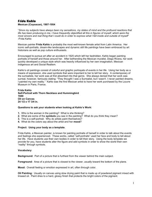 Frida Kahlo Art Essay Example For Students - 722 words . . .