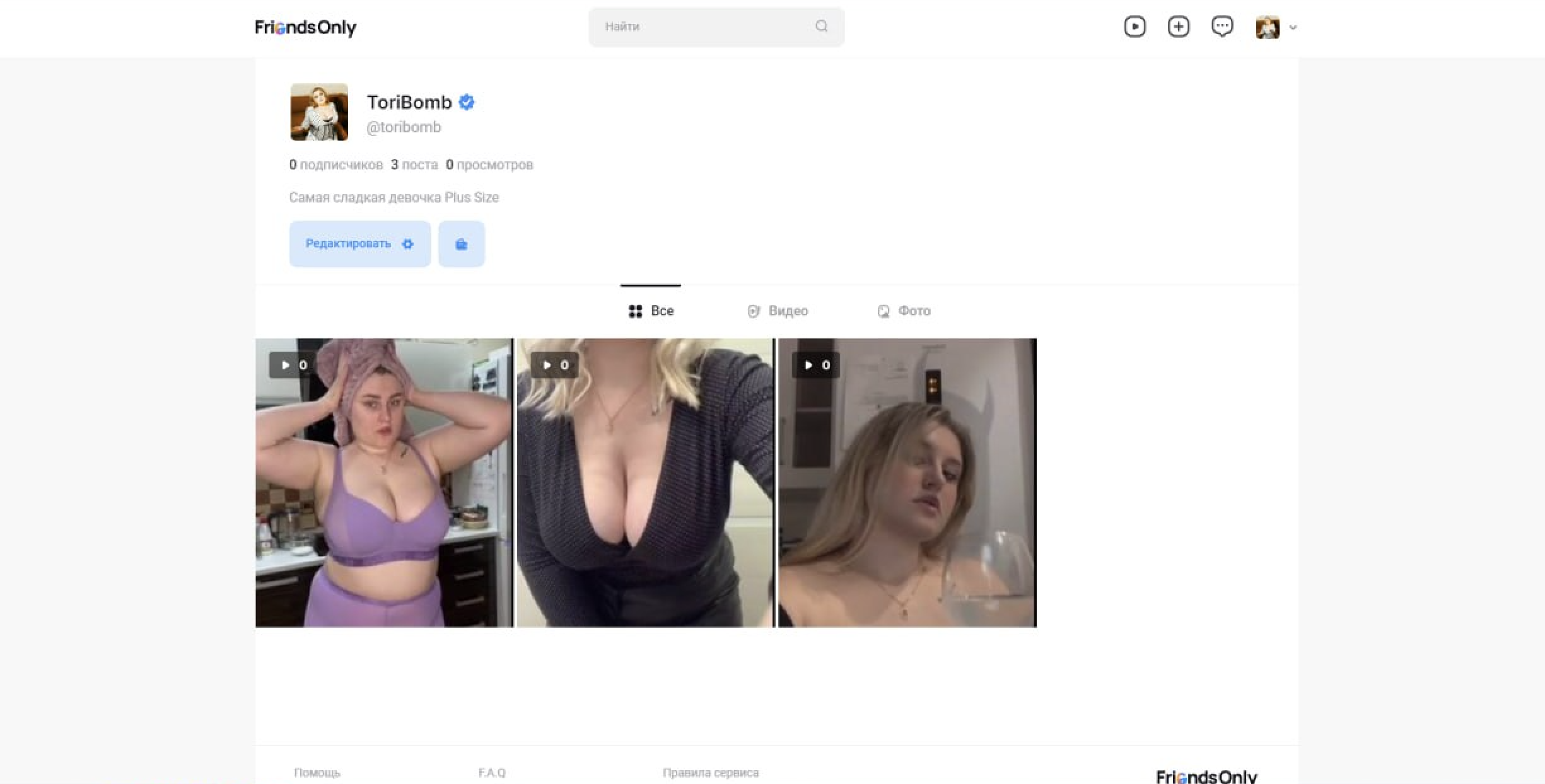 Песец контентуFriendsOnly.Me — сайт, позиционирующий себя как "порно-тикток". Там вы можете публиковать небольшие видео 18+. Стандартные reels, short и tiktok'и.