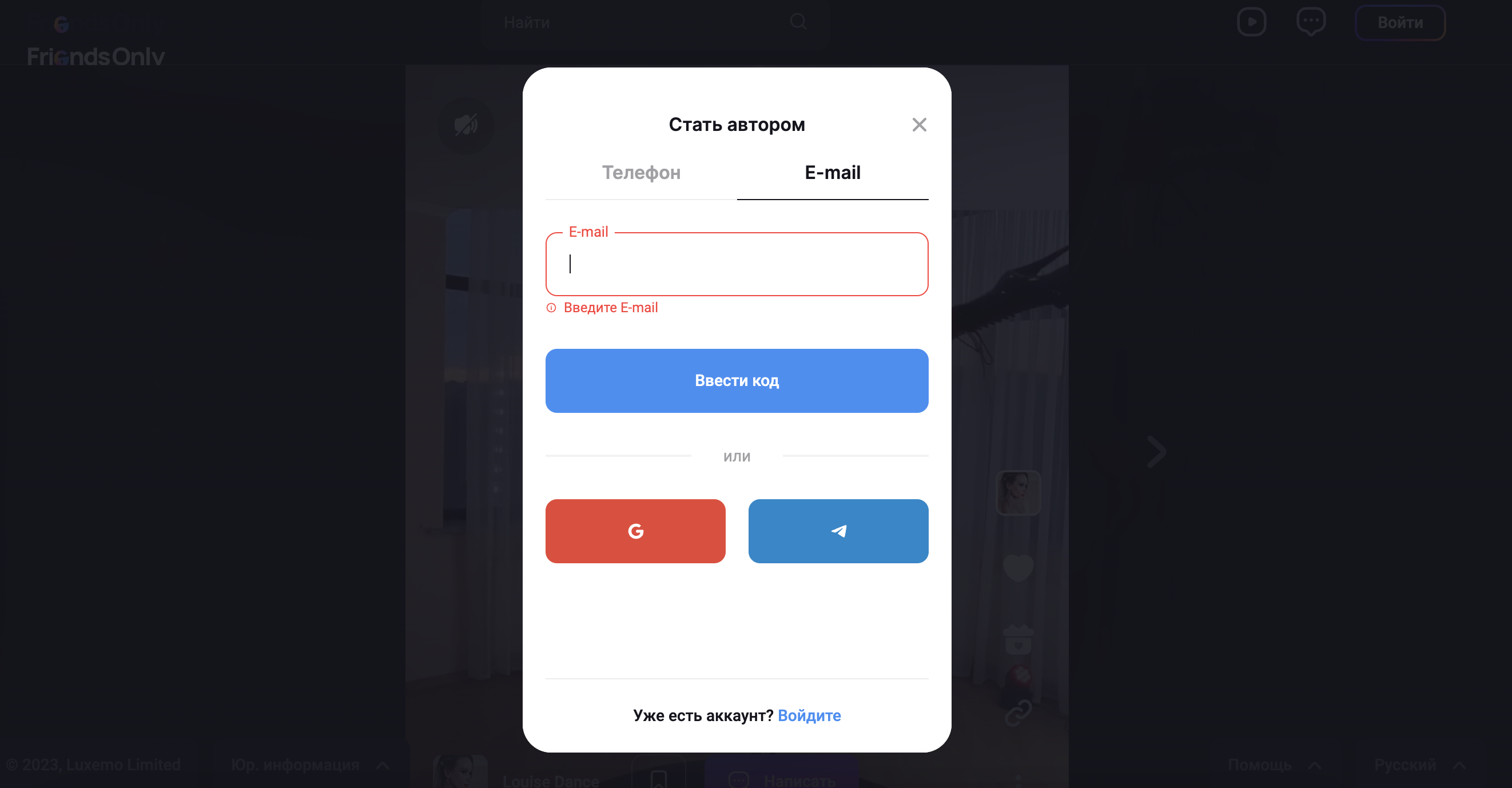 Регистрируемся как автор на FriendsOnly