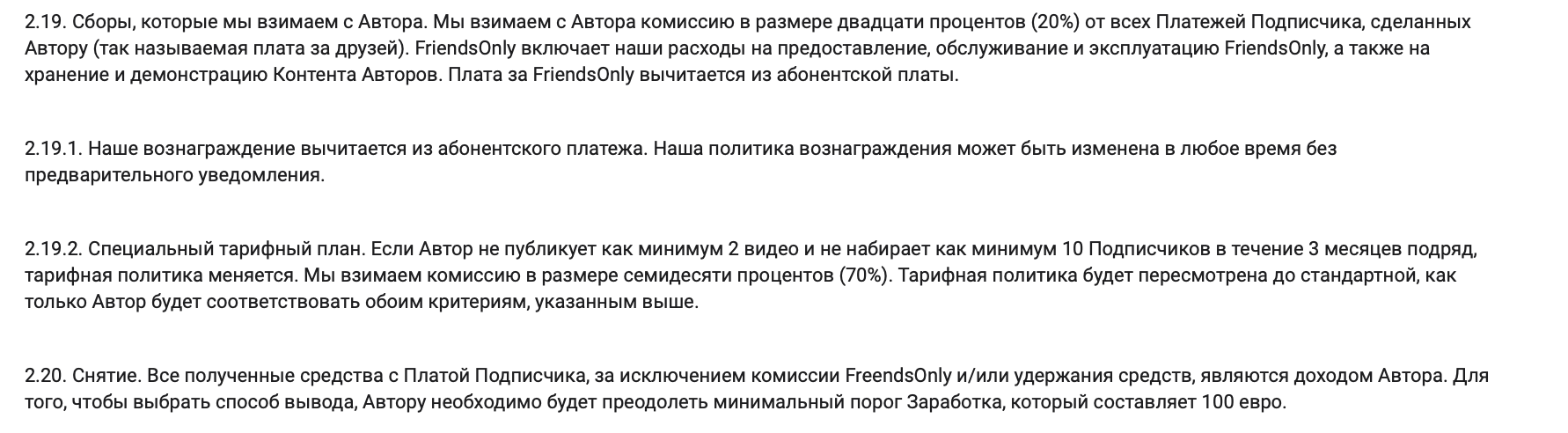 А ещё есть "Соглашение о рекламе контента Авторов FriendsOnly Luxemo (Партнерская программа)" где говорят про 50% с привлеченных подписчиков...