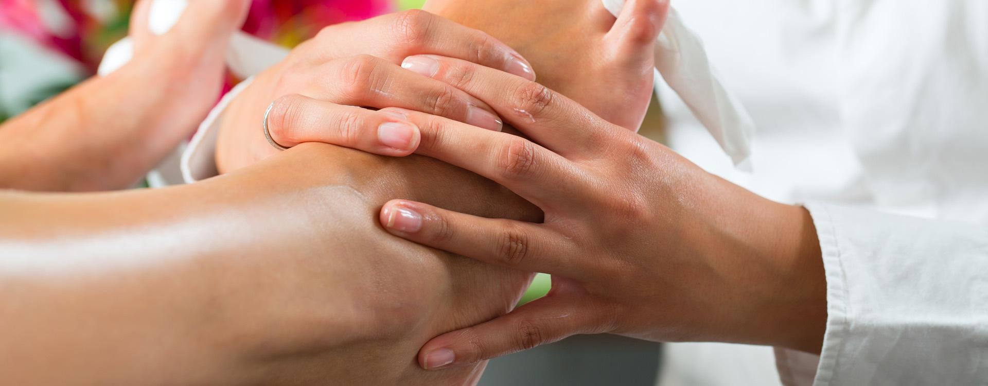 Frivole Handmassage durch die dralle Schwarze