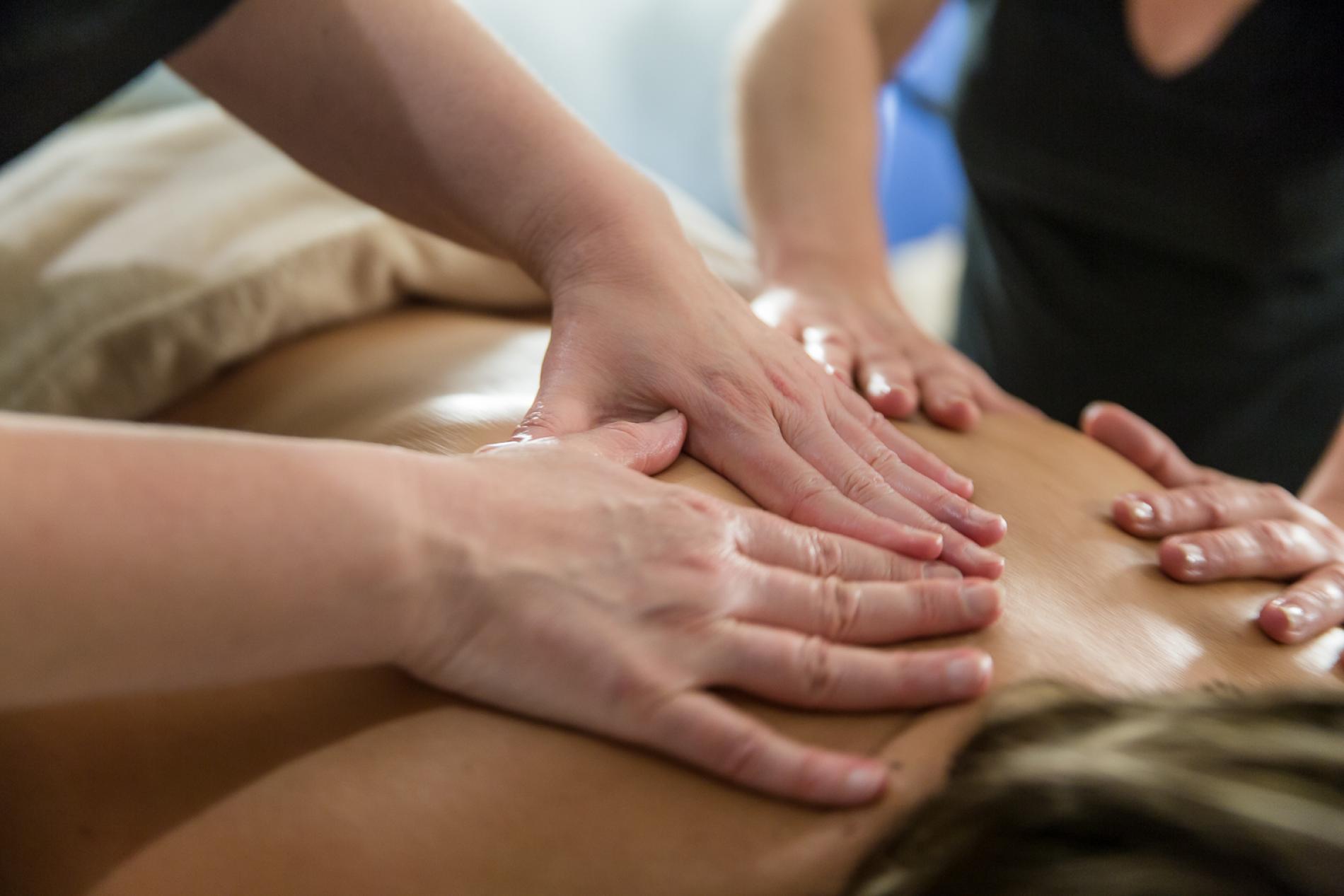 Zwei ölige Asiatinnen rutschen über seinen Schwanz