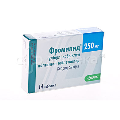 Фромилид® Международное непатентованное название . Кларитромицин . Лекарственная форма . Таблетки, покрытые пленочной оболочкой 250 мг и 500 мг . Состав . Одна таблетка содержит