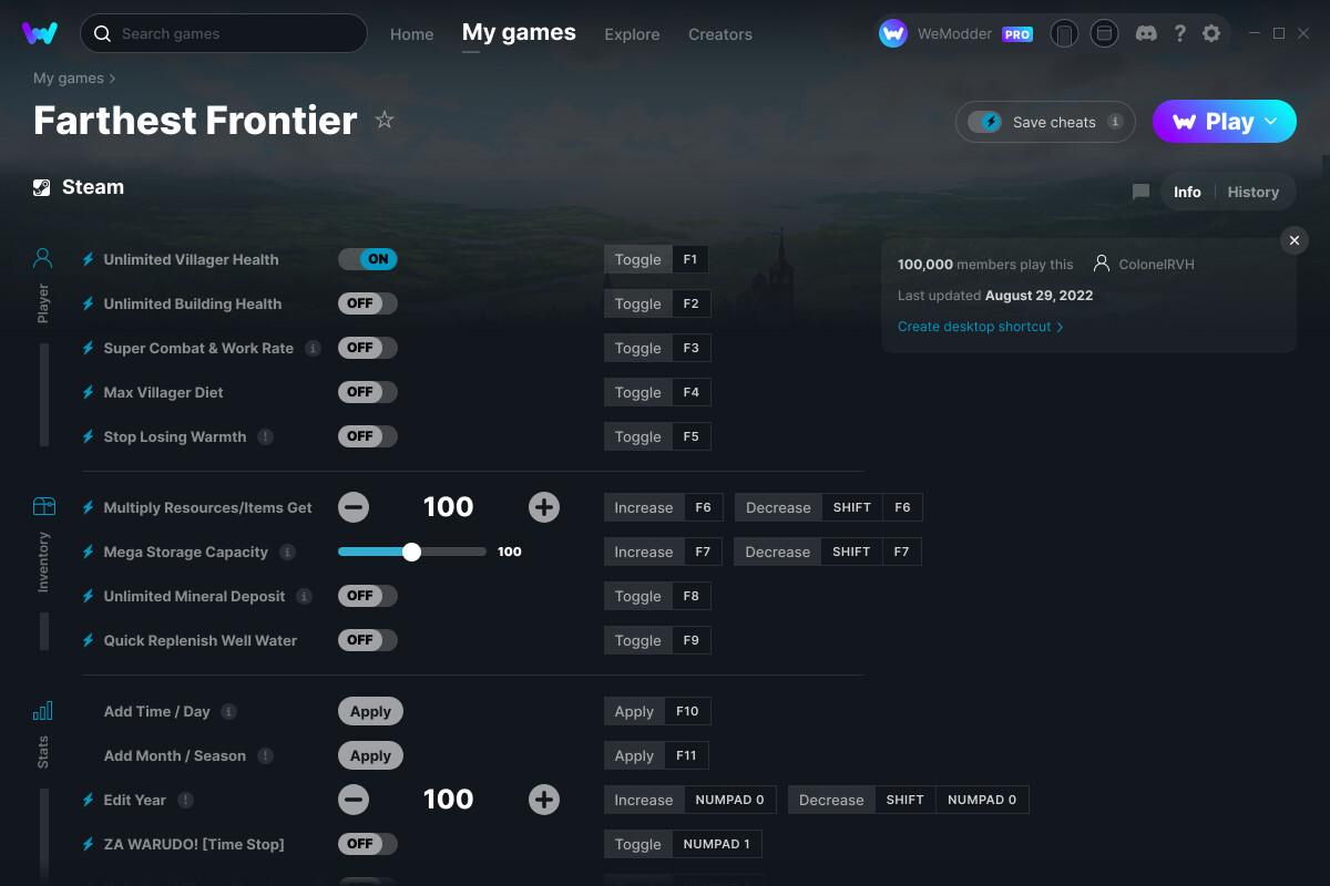 Frontier настройки