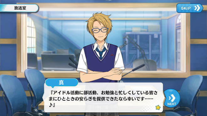 Макото: «Уверен, ваши академические, айдолские и клубные занятия не дают вам покоя, но я искренне надеюсь, что мы смогли предоставить всем вам, слушателям, немного времени, чтобы расслабиться…♪»