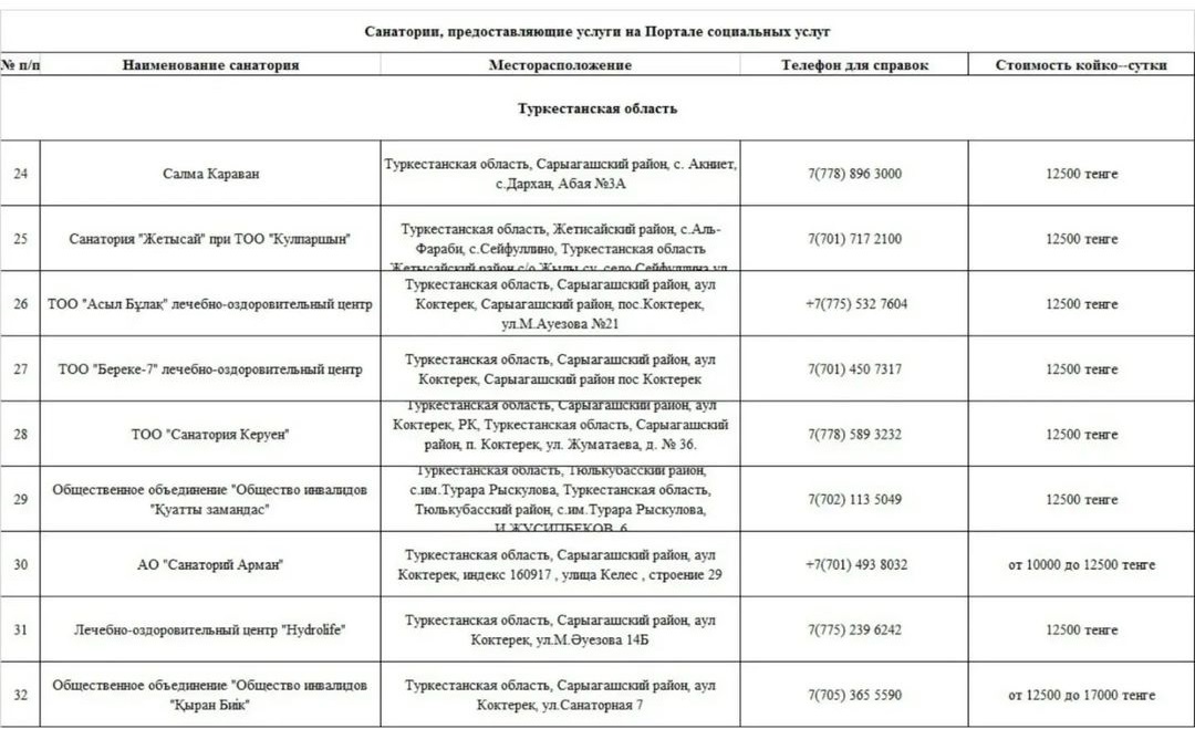 Фсс список санаториев