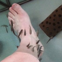 Im Fußfetifisch machen sich Fische über die Füße der Kunden her und knabbern abgestorbene Hautzellen ab . Die Haut soll dadurch glatt und weich werden .