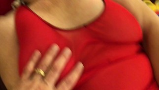 Seductive cougar giving slow hand job
