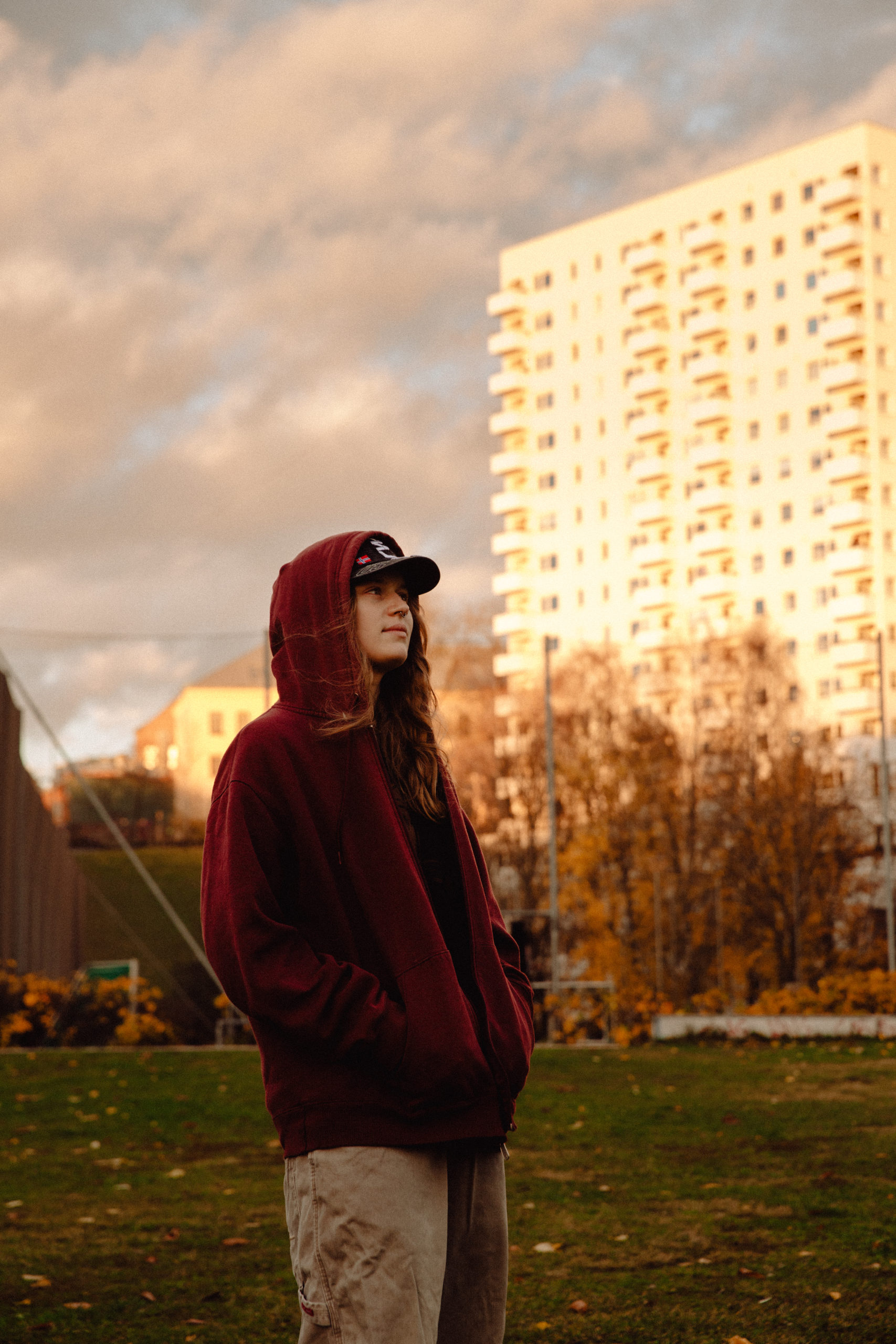 Portrait of Tween Girl. In Cap Looking away from Camera