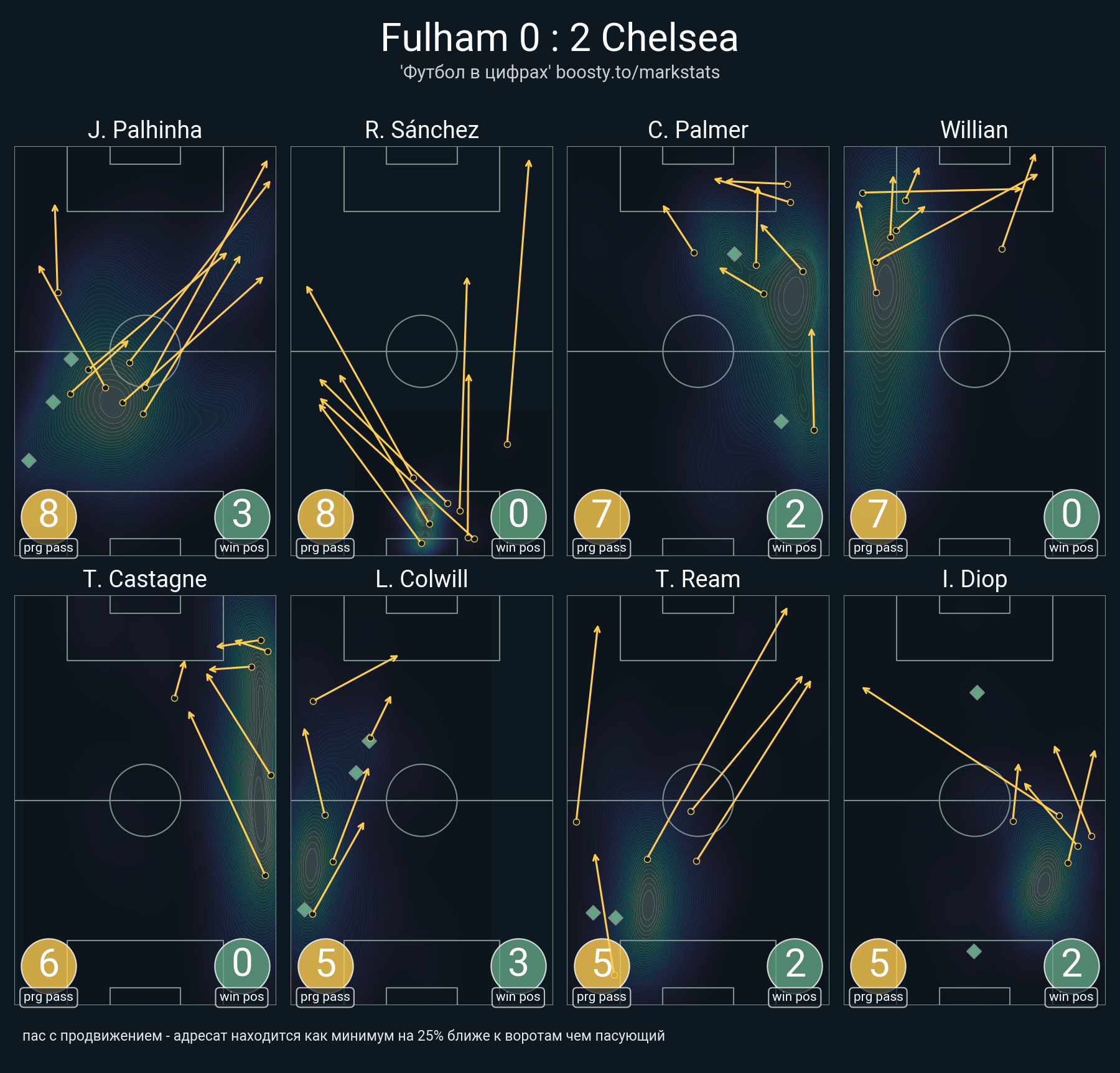 27 успешных передач из 33 попыток (1 ассист, 1 под удар, 7 с продвижением, 5 на трети соперника)