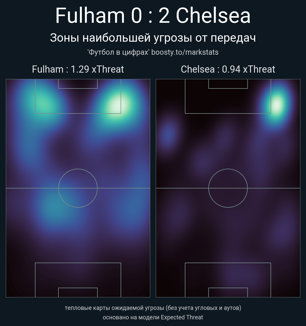 xThreat без учета угловых: 1.29 - 0.94