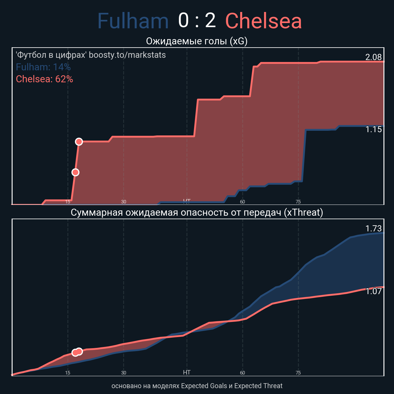Ожидаемые голы (NPxG): 1.15 - 2.08